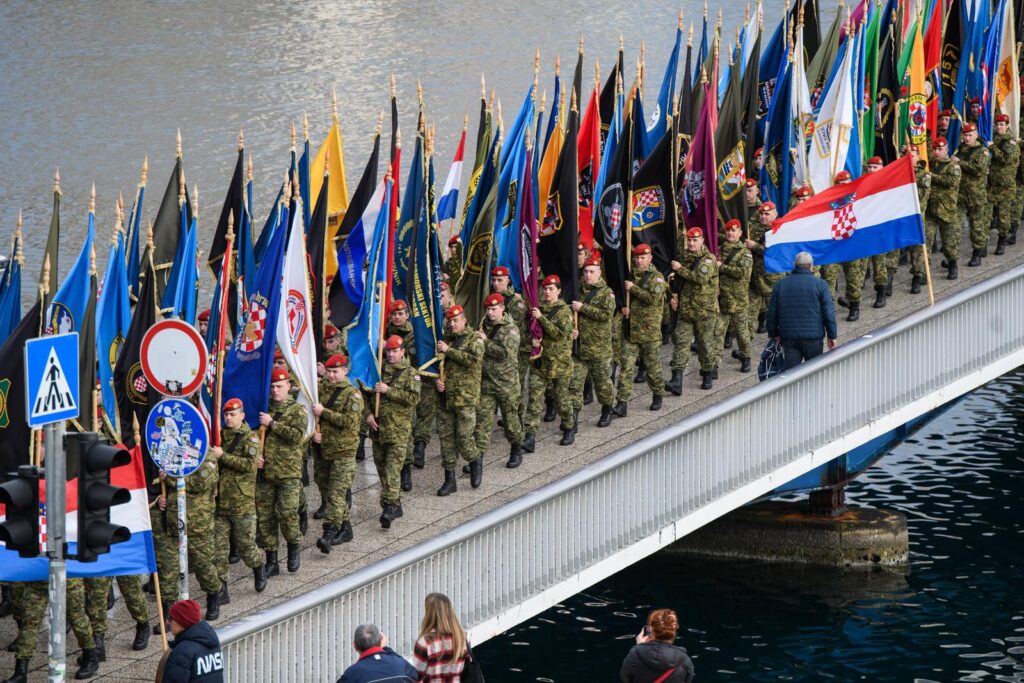 Vojni mimohod s ratnim zastavama ulicama grada Zadra povodom obiljezavanja obljetnice VRO Maslenica. Foto: Pixsell/PIXSELL