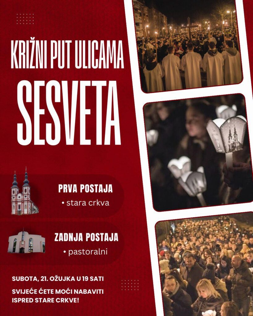 Prva postaja križnog put ulicama Sesveta počinje u 19 sati u župnoj crkvi Župe Svih Svetih. Posljednja postaja je u pastoralnom centru.