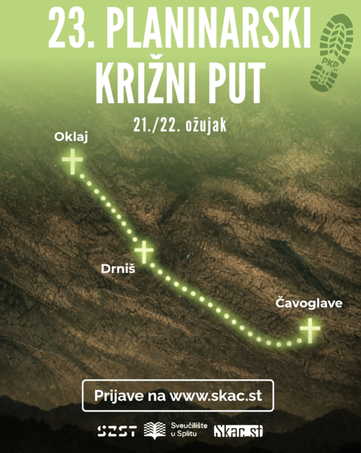 23. planinarski križni put u organizaciji Studentskog katoličkog centra Split bit će održan 21. i 22. ožujka 2026. na području Drniša pod geslom „Budi volja Tvoja“.
