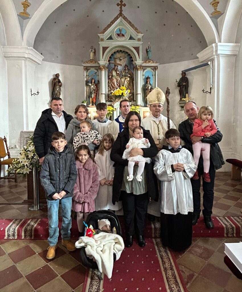 Sisački biskup Vlado Košić krstio je u subotu, 22. studenoga 2025., u crkvi sv. Marije Magdalene u Sunji šesto dijete obitelji Maria i Mirjane Jurić – malenu Mihaelu.
