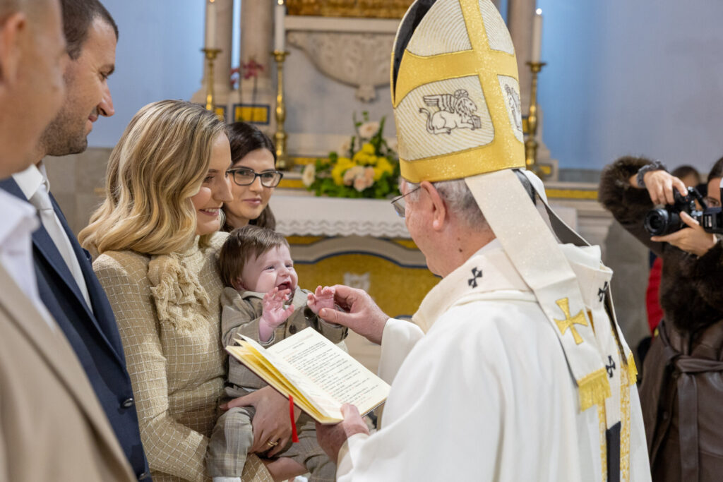 Upozorio je i na suvremene izazove, napominjući da narod bez djece nema budućnosti, te pozvao na veću otvorenost životu i podršku obiteljima s više djece. Zaključio je molitvom da ovo novo kršteno dijete raste u Božjoj milosti te da mu zajednica bude potpora u duhovnom rastu. Roditeljima je uručio prigodne darove biskupije.