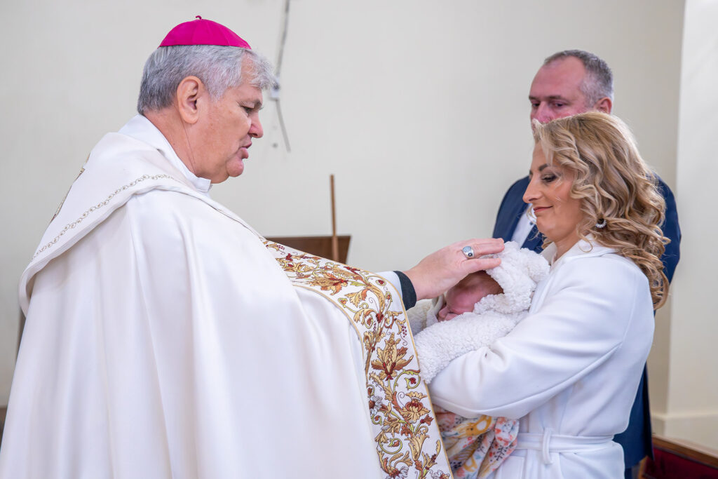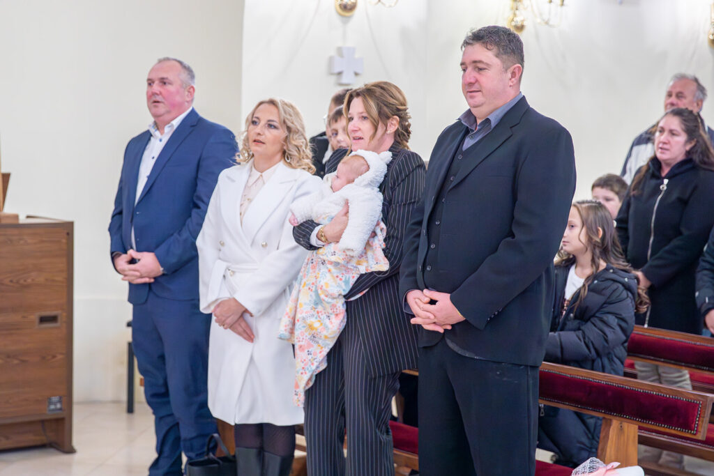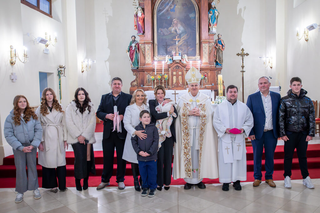 Sisački biskup Vlado Košić krstio je u subotu, 22. studenoga 2025., u crkvi sv. Marije Magdalene u Sunji šesto dijete obitelji Maria i Mirjane Jurić – malenu Mihaelu.