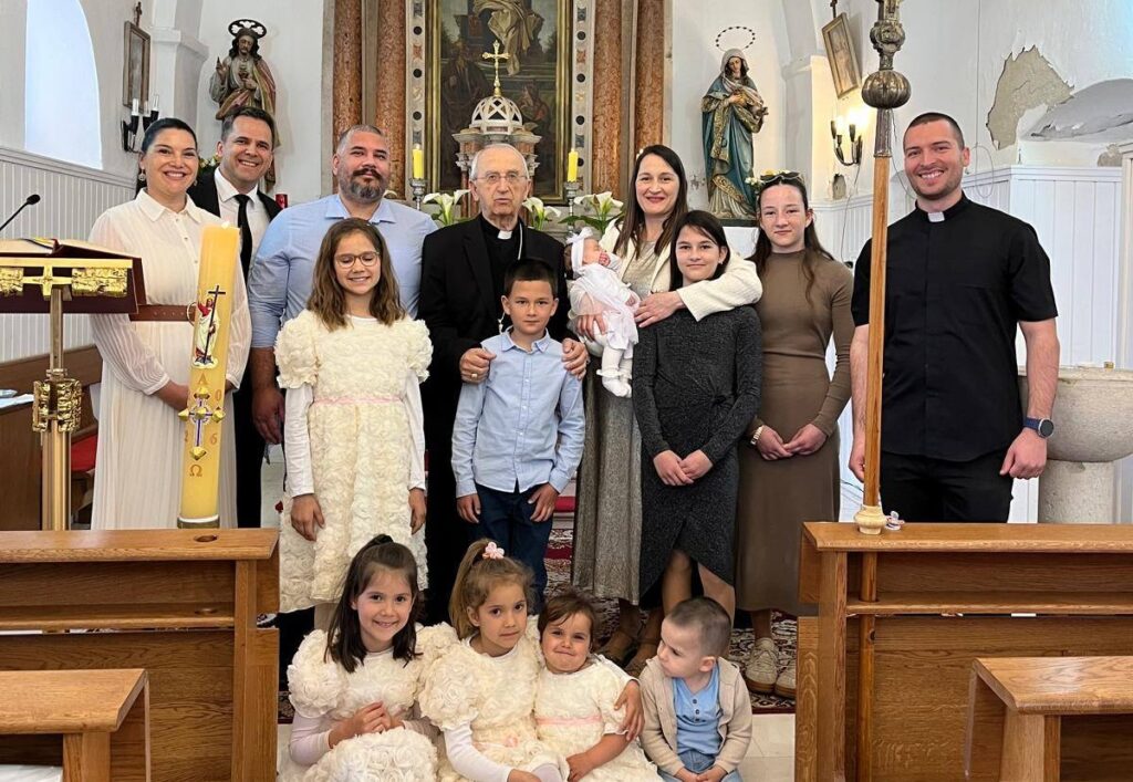 Umirovljeni zadarski nadbiskup Želimir Puljić krstio je u nedjelju 12. travnja Katarinu, peto dijete u obitelji Šimuna i Mile Gobin, u župnoj crkvi sv. Jakova u Solinama na Dugom otoku.