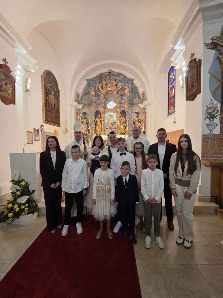 Mons. Marko Kovač, pomoćni biskup zagrebački krstio je malog Ivana, šesto dijete u obitelji Zvonimira i Mateje Jeđud u župnoj crkvi Uznesenja Blažene Djevice Marije u Brezovici.