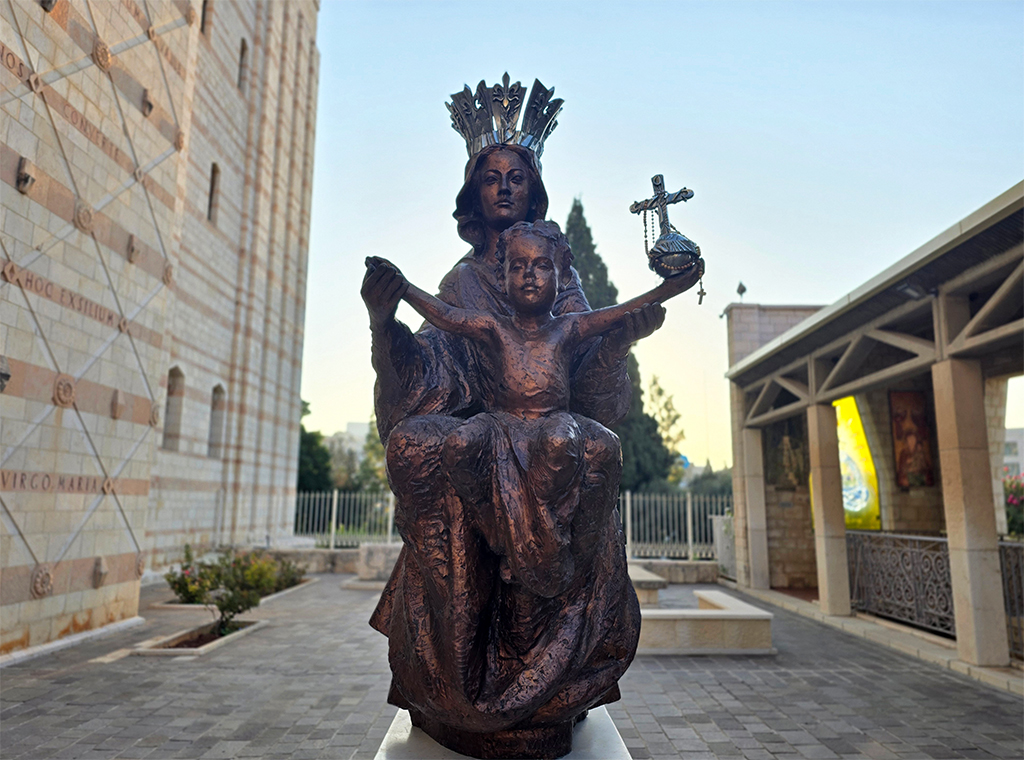 U kompleksu svetišta Svete Obitelji u Nazaretu, u čijem je središtu bazilika Navještenja ukrašenog mozaičkim prikazim Gospe iz različitih naroda, odnedavno se nalazi novi kip Majke Božje Kraljice planina, dar iz Češke.