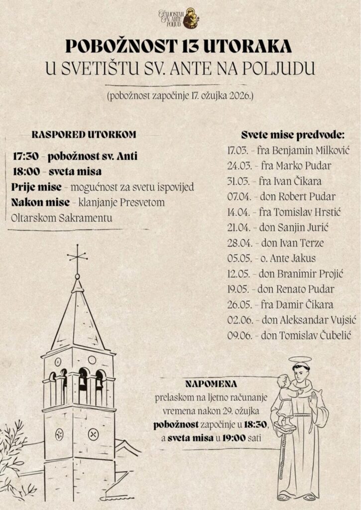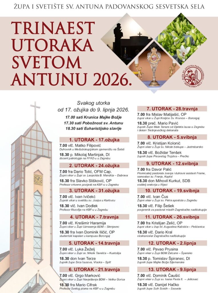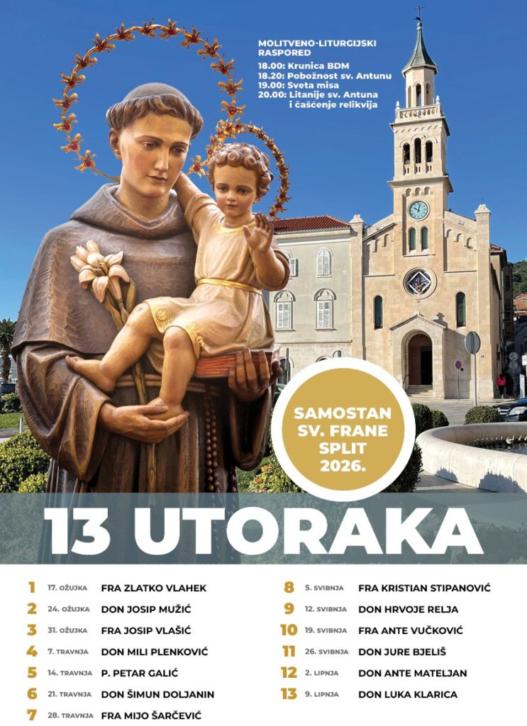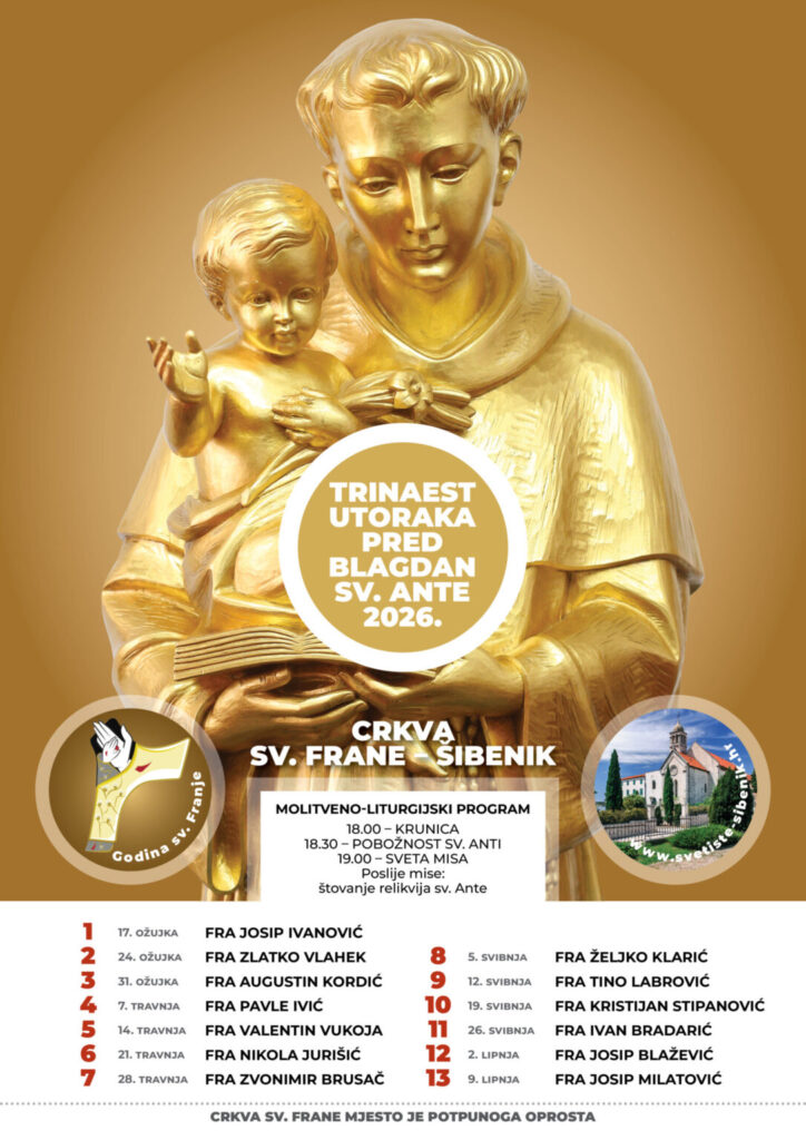 U nastavku donosimo plakate s rasporedom i mjestima gdje se možete uključiti u pobožnost trinaest utoraka u čast sv. Anti.