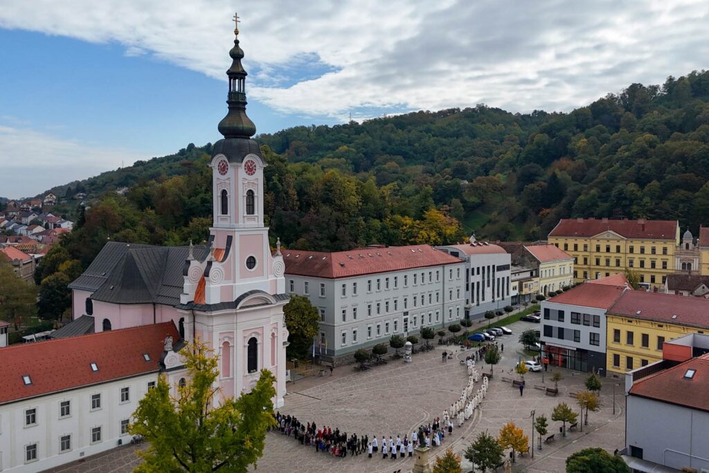 Slavlje je počelo procesijom s relikvijom sv. Terezije od srednjovjekovne crkve sv. Lovre do barokne katedrale sv. Terezije.