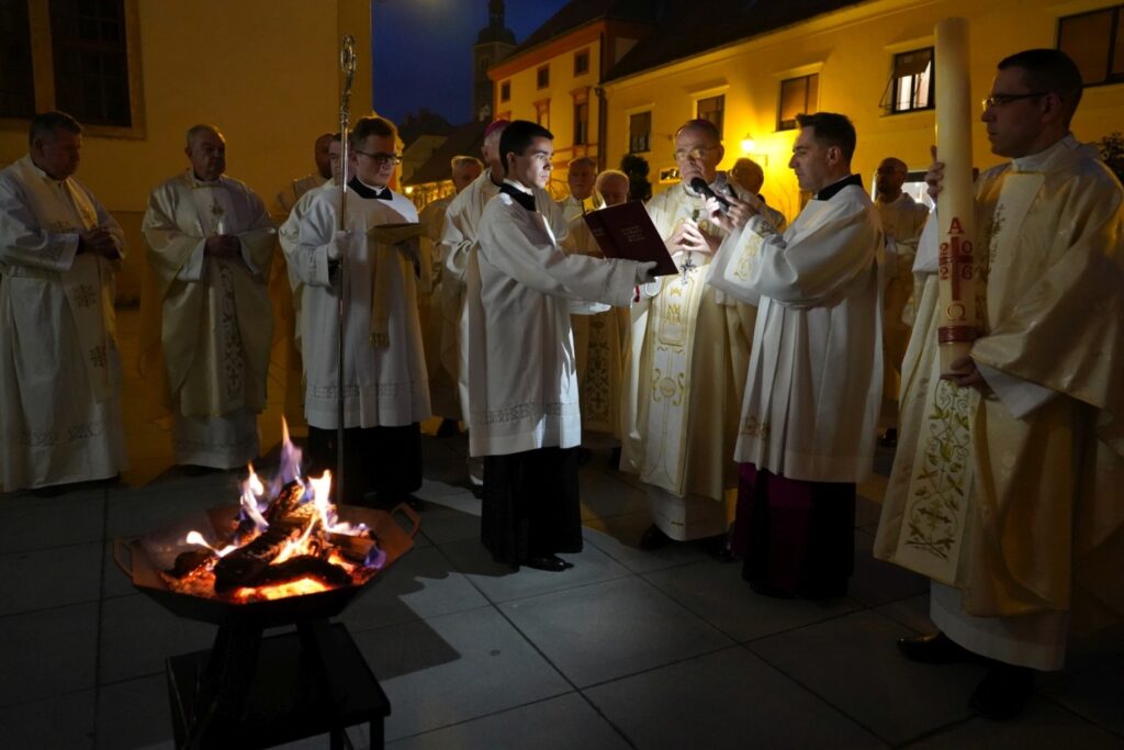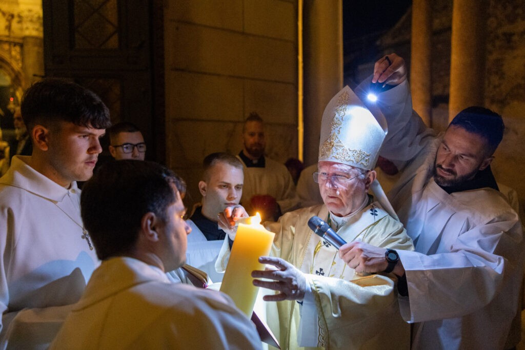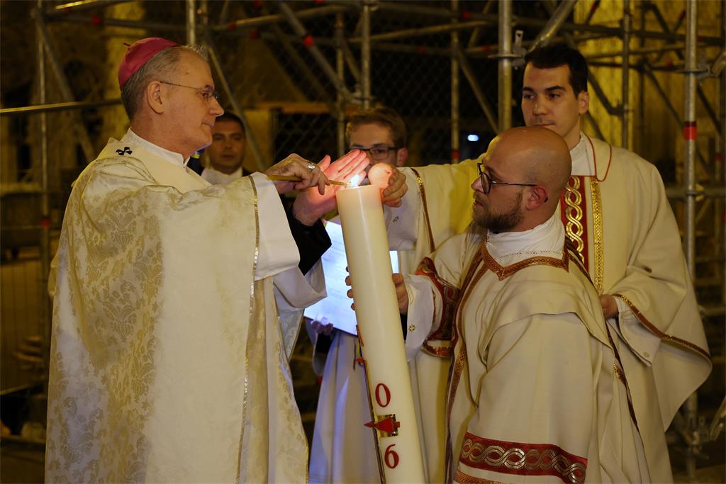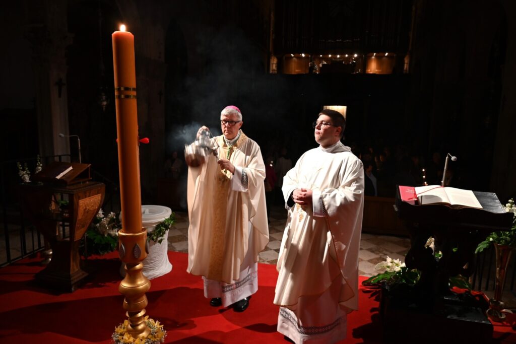 Zagrebački nadbiskup Dražen Kutleša predvodio je Vazmeno bdjenje u svetoj noći Velike subote u zagrebačkoj katedrali, a homiliju je izrekao pomoćni biskup Marko Kovač.