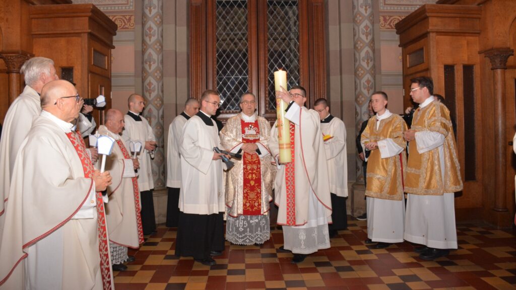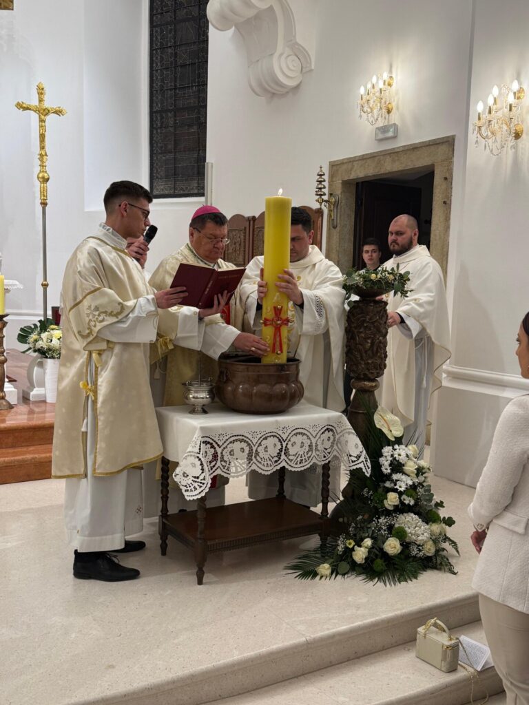 Vazmeno bdjenje u đakovačkoj katedrali predvodio je vlč. mr. Dario Hrga, kancelar Nadbiskupskog ordinarijata u zajedništvu s đakovačko-osječkim nadbiskupom metropolitom Đurom Hranićem i drugim svećenicima.