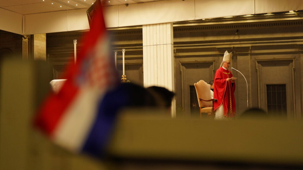 „Kada globalizacija briše identitete, sekularizam razara duhovne temelje, a relativizam razvodnjava istinu, znamo da nas vjernost Petrovoj Stolici čuva od rasplinjavanja i gubitka korijena“, poručio je predsjednik Hrvatske biskupske konferencije i zagrebački nadbiskup Dražen Kutleša u homiliji na misnom slavlju na Trgu svetoga Petra u Vatikanu koje je u utorak 7. listopada okupilo tisuće hrvatskih hodočasnika iz domovine i inozemstva u sklopu Hrvatskoga nacionalnog hodočašća u Rim.
