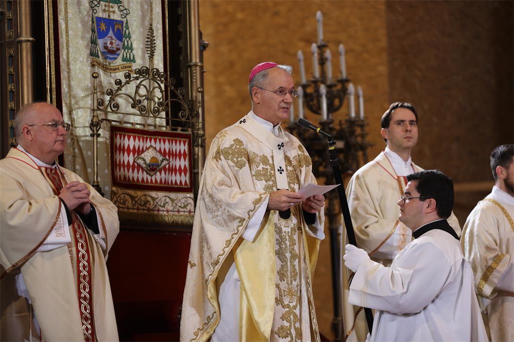 U uvodu u misno slavlje nadbiskup Kutleša pozdravio je sve okupljene i rekao kako „naše okupljanje noćas nije samo povratak u građevinu, nego povratak u živo srce naše mjesne Crkve; u mjesto molitve, žrtve, utjehe i nade tolikih naraštaja.“