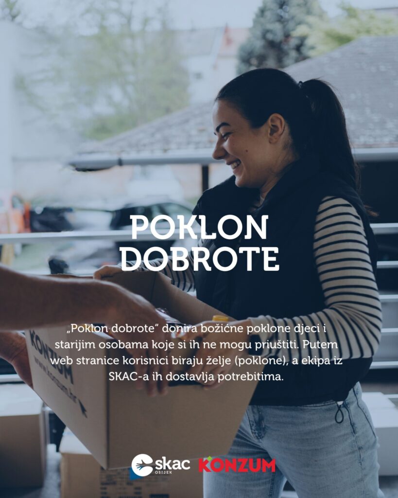 U Skacu Osijek i ove godine želimo ljudima otvoriti prostor za jedno konkretno dobro djelo. Blagdani su vrijeme kada se najlakše vidi koliko mala gesta može unijeti toplinu u nečiji dom. Zato Poklon dobrote povezuje one koji žele pomoći s onima kojima je podrška najpotrebnija, jednostavno i s puno srca.