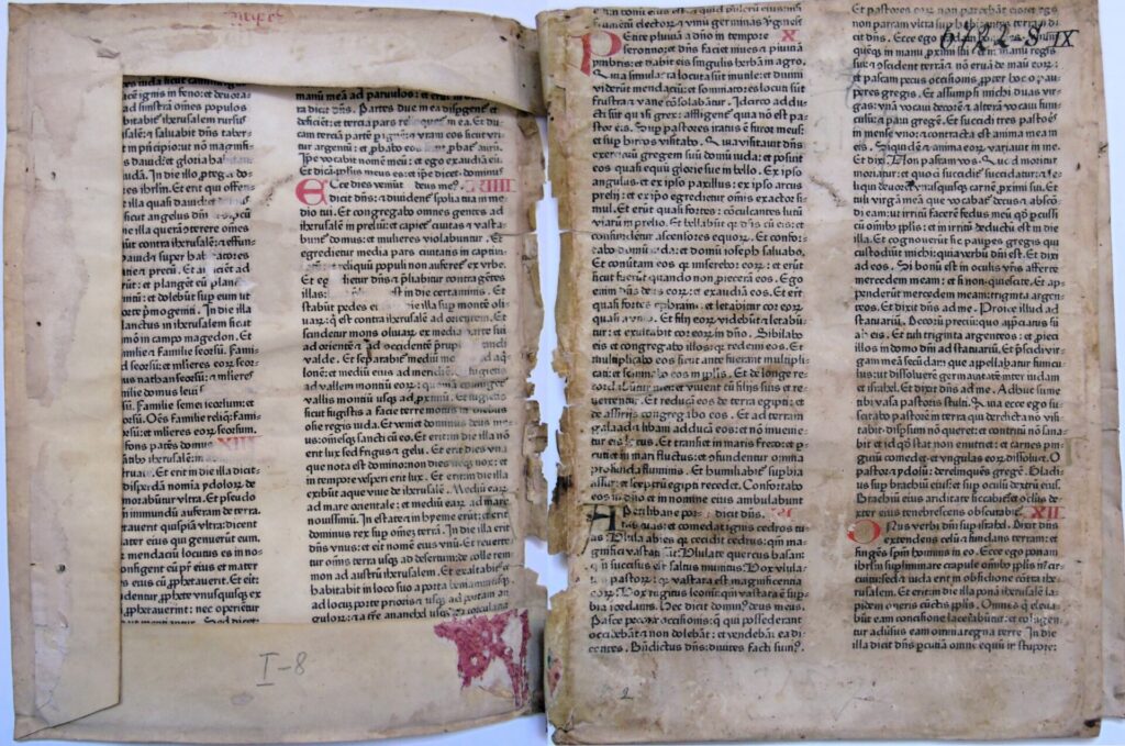Ponovni pronalazak dvaju ulomaka ove inkunabule, u siječnju 2026., otkrio je kako oba imaju signaturu „I – 8“. To je potvrdilo da fragmenti zajedno sadrže četiri lista ili osam stranica Schöfferove Biblije.
