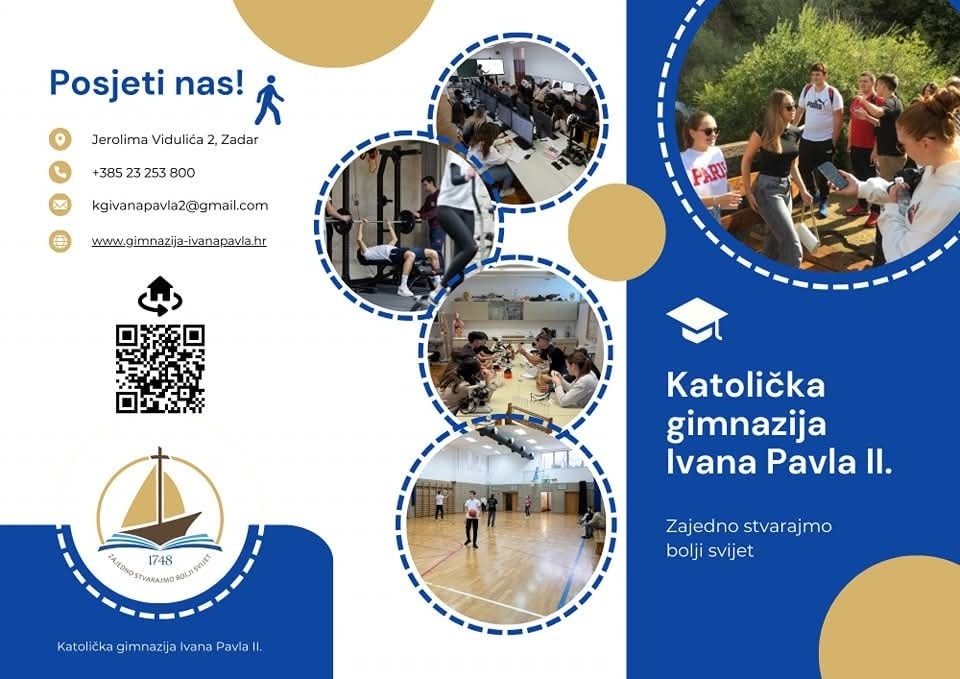 Katolička gimnazija Ivana Pavla II. Zadar obratila se učenicima osmih razreda koji su pred odlukom upisa u srednju školu i njihovim roditeljima da se upoznaju s radom njihove škole i mogućnošću upisa jednog od tri smjera u toj školi.