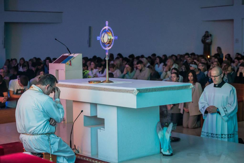 Nakon mise mladi su ostali sabrani u molitvi i klanjanju pred Presvetim Oltarskim Sakramentom.