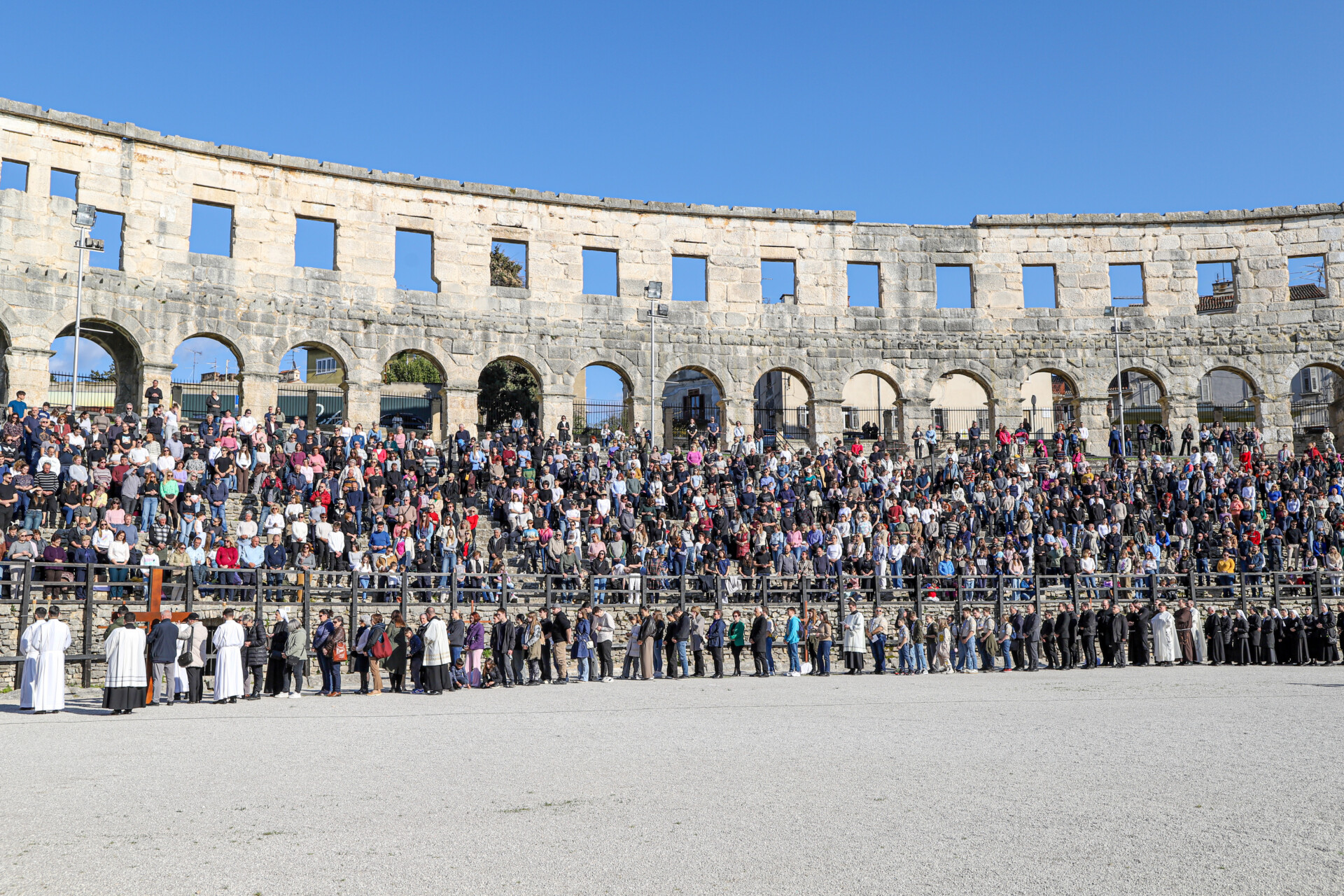 Križni put održan je i ove godine u subotu uoči Cvjetnice, 28. ožujka, u pulskoj Areni. U simbolično vrijeme u 15 sati, vrijeme Isusove smrti, krenula je povorka s križem koju je noseći križ predvodio porečki i pulski biskup mons. Ivan Štironja.