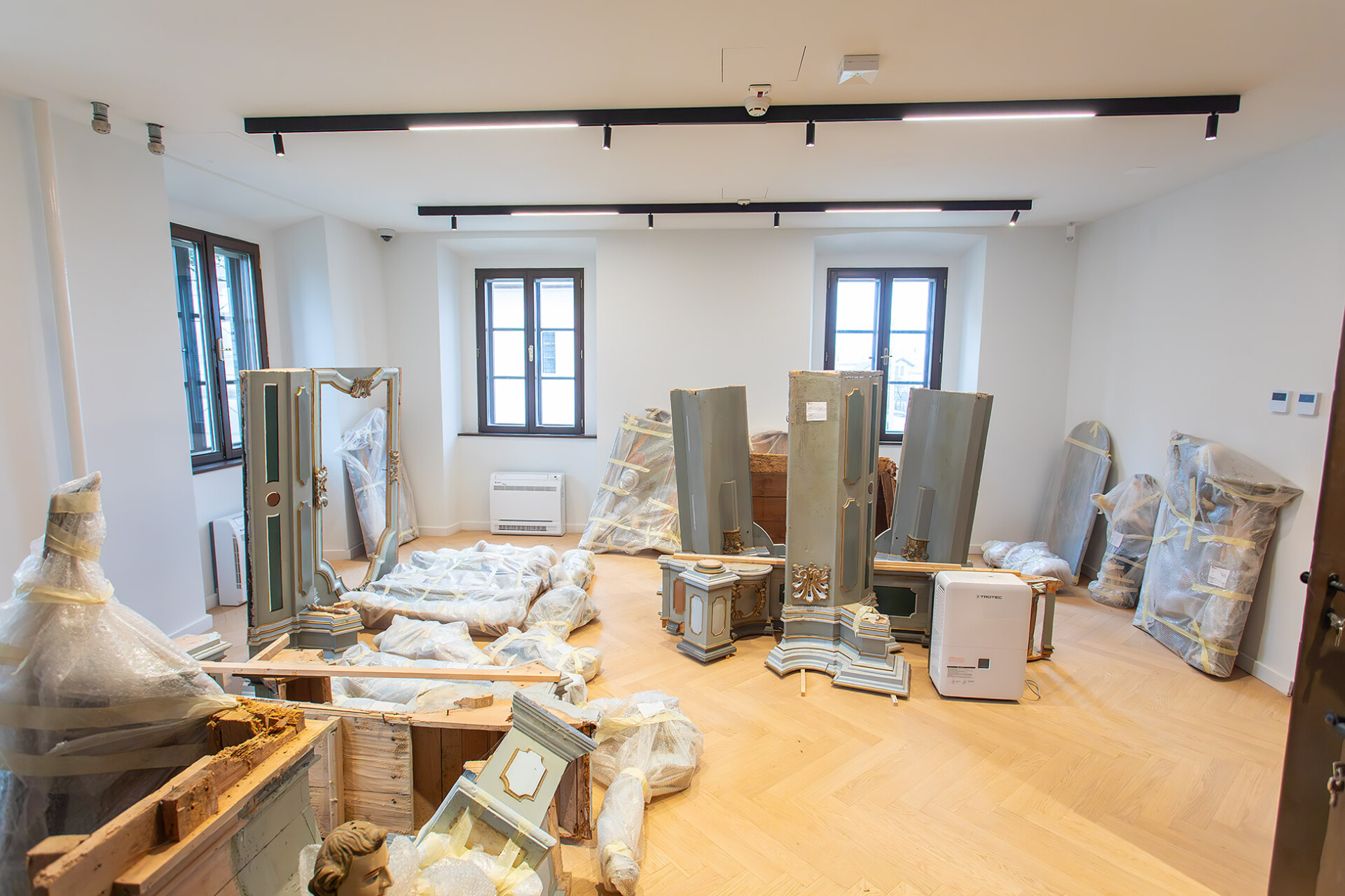 Posebnu zanimljivost predstavlja arheološki nalaz dviju rimskih kamenih urni, pronađenih ugrađenih u zidove kuće, danas očišćenih i prezentiranih in situ – kao svjedočanstvo ponovne uporabe materijala antičke Siscije. Također je pojasnila kako se trenutačno u ovom objektu čuva i obrađuje inventar i predmeti iz crkava u Selima, Žažini, Maloj Gorici, Starom Farkašiću, Gojlu i još nekih lokaliteta.