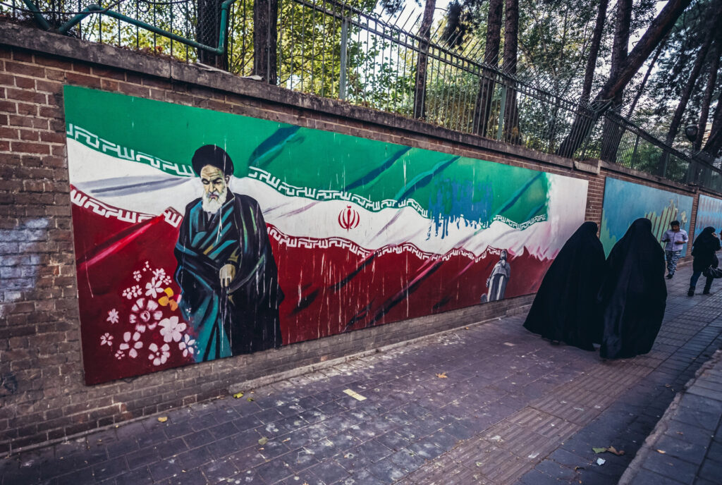 Žene prolaze pored poznatog zida bivšeg veleposlanstva SAD-a u Teheranu, Iran / Foto: Depositphotos