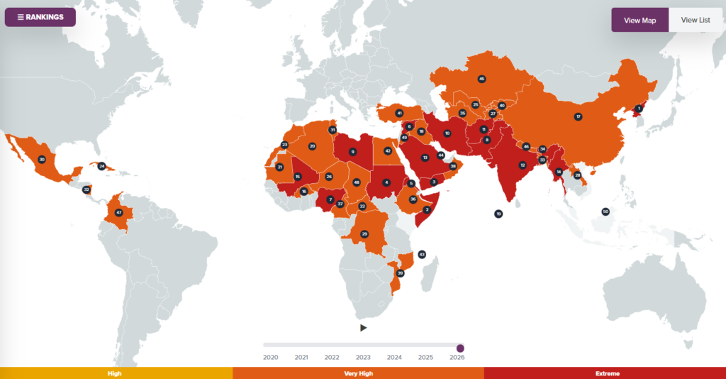 Izvještajno razdoblje za Svjetski popis praćenja progona 2026. obuhvaćalo je razdoblje od 1. listopada 2024. do 30. rujna 2025.