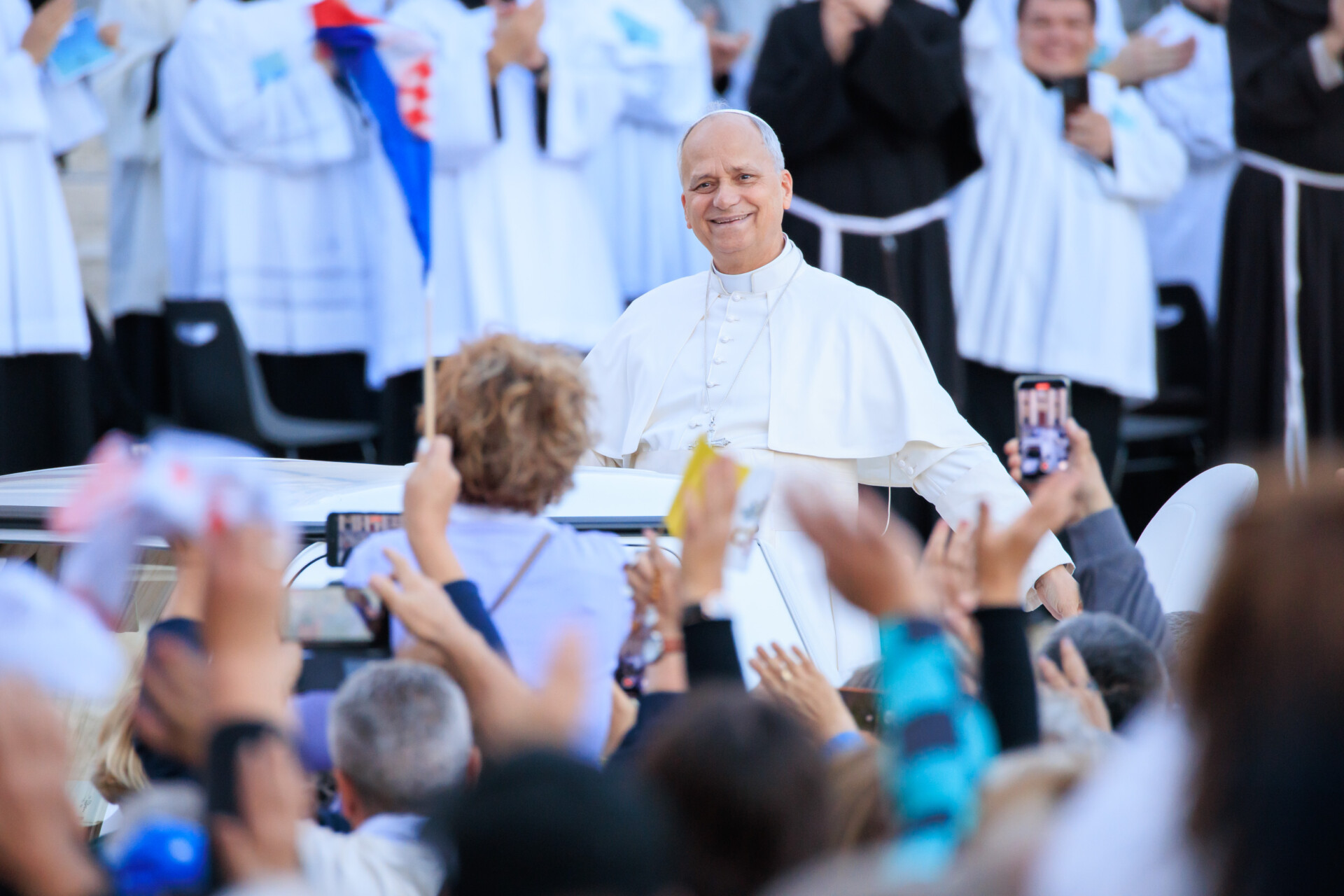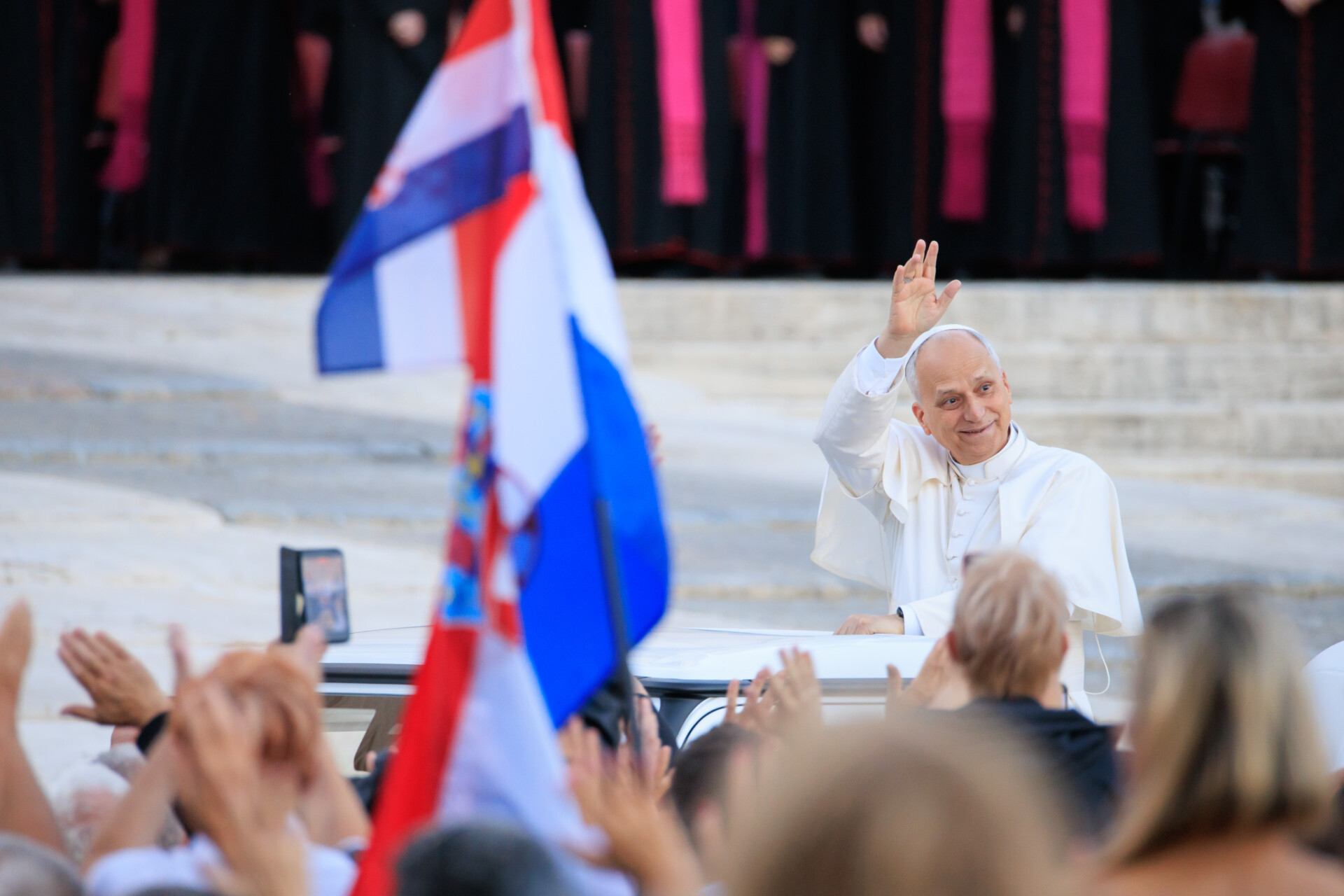 - Hrvatski biskupi pozdravljaju papu Lava XIV. tijekom Hrvatskog nacionalnog hodočašća / Foto: don Elvir Tabaković