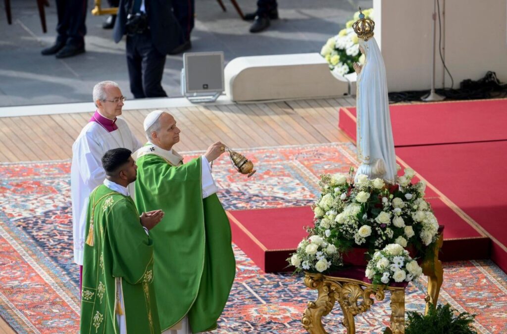 Papa Lav XIV. pred originalnim kipom Gospe Fatimske / Foto: Vatican Media