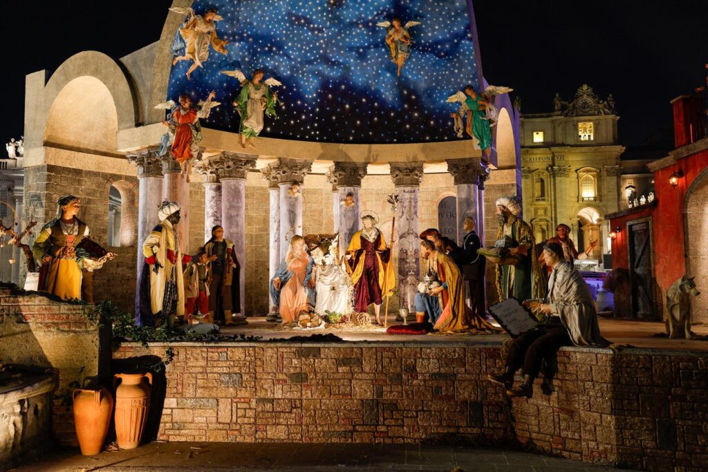 Božićno drvce na Trgu dolazi iz Val d’Ultima, jedne od najslikovitijih i manje poznatih dolina Južnog Tirola u Italiji, dok jaslice potječu iz biskupije Nocera Inferiore-Sarno, jedne od najstarijih u Italiji.