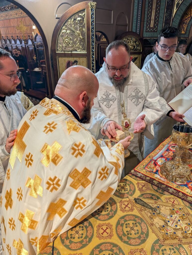 Prema bizantskom katoličkom obredu, đakon Ante je, nakon Velikog ulaska i donošenja svetih darova na oltar, doveden u svetište, gdje se triput poklonio biskupu reditelju i triput bio vođen oko oltara, ljubeći ga pritom.