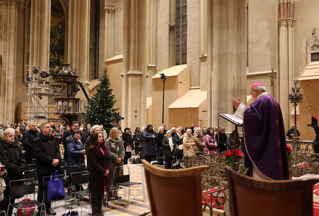 Zagrebački pomoćni biskup Mijo Gorski predslavio je na Badnjak, 24. prosinca 2025., misu zornicu u zagrebačkoj katedrali koju je blagoslovio nakon obnove.