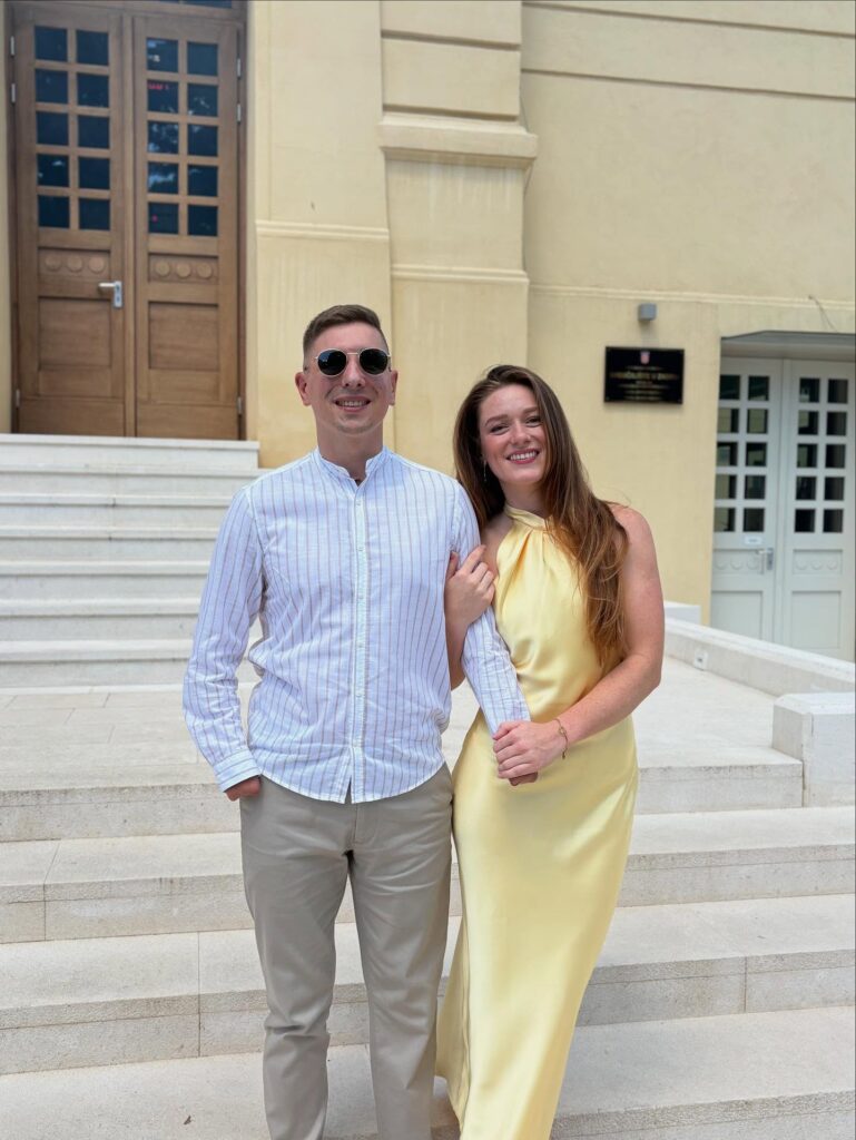 Josip Milković i izabranica njegova srca nakon uspješne obrane diplomskog rada u srpnju 2025. na Sveučilištu u Zadru / Foto: Facebook (Josip Milković)