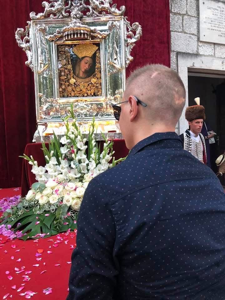 Josip Milković pred Čudotvornom Gospom Sinjskom / Foto: Facebook (Josip Milković)