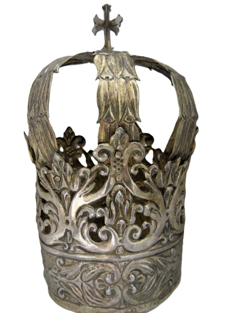 Kruna potječe iz 13. stoljeća, a u donjem dijelu ima obruč s rupicama koje su služile za učvršćivanje na kip.