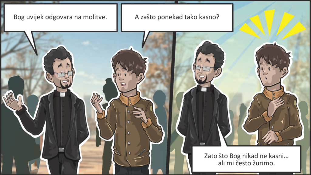 Strip na duhovit način prikazuje zgode jednog svećenika i njegovih župljana. Prema ideji vlč. Antonija Marija Čirka, župnika zagrebačke Župe Bezgrešnog začeća Blažene Djevice Marije Malešnica–Oranice, ilustracije stvara Hrvoje Habljak. Nove epizode se redovito objavljuju ponedjeljkom na stranicama Hrvatske katoličke mreže.