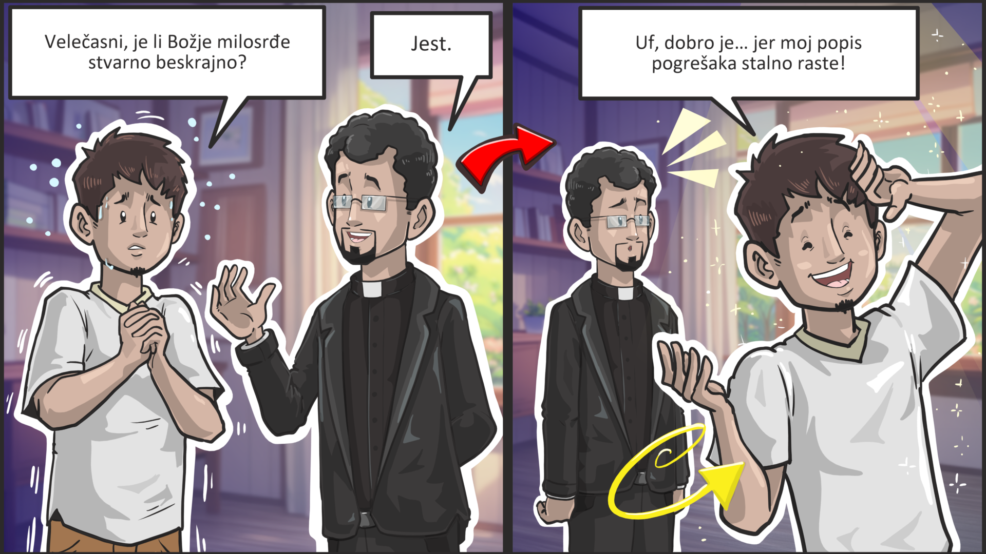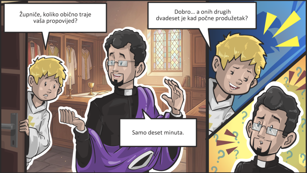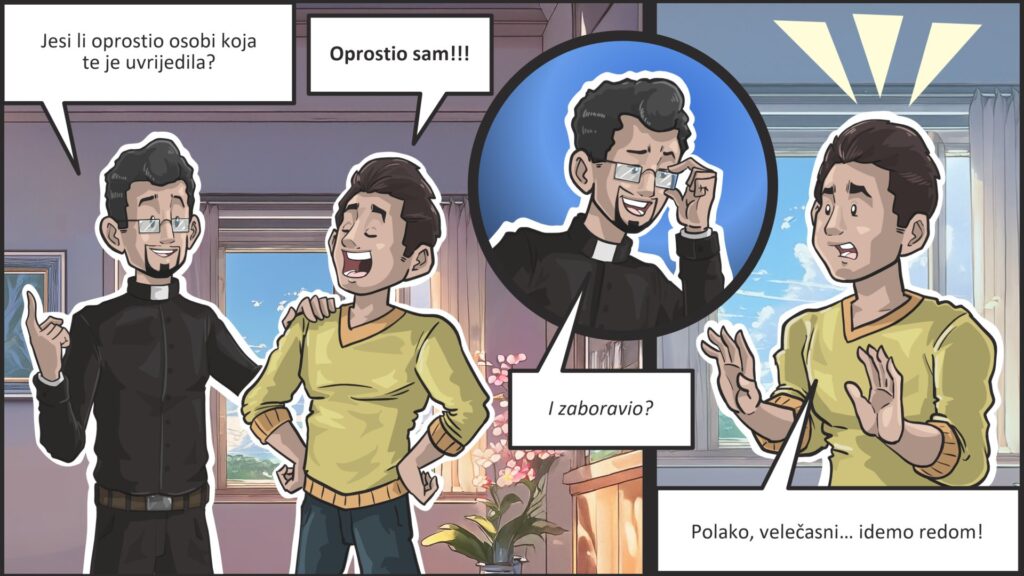 Strip na duhovit način prikazuje zgode jednog svećenika i njegovih župljana. Prema ideji vlč. Antonija Marija Čirka, župnika zagrebačke Župe Bezgrešnog začeća Blažene Djevice Marije Malešnica–Oranice, ilustracije stvara Hrvoje Habljak. Nove epizode se redovito objavljuju ponedjeljkom na stranicama Hrvatske katoličke mreže.