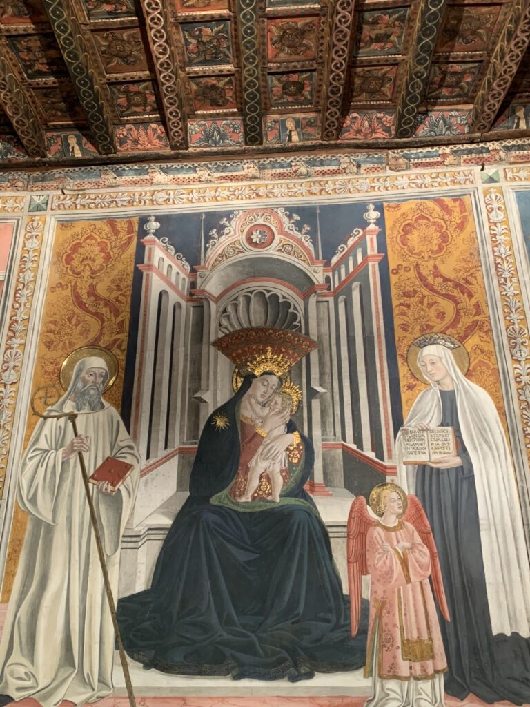Oratorij je oslikan s 25 fresaka iz 15. stoljeća s prizorima mističnih viđenja i čuda iz života sv. Franciske, koje možete vidjeti na Instagramu. Također, u staroj se blagovaonici mogu vidjeti scene borba koje je svetica imala s đavlom.