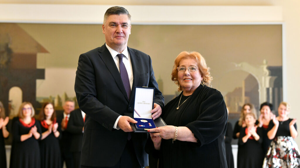Predsjednik Zoran Milanović odlikuje dr. Vlastu Vučevac za razvoj i unaprjeđenje palijativne skrbi / Foto: Ured predsjednika RH